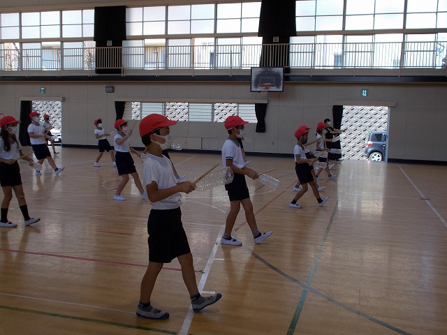 身体の動きが概ね完成して小道具を使った練習の段階に入りました。4年生と6年生の練習です。