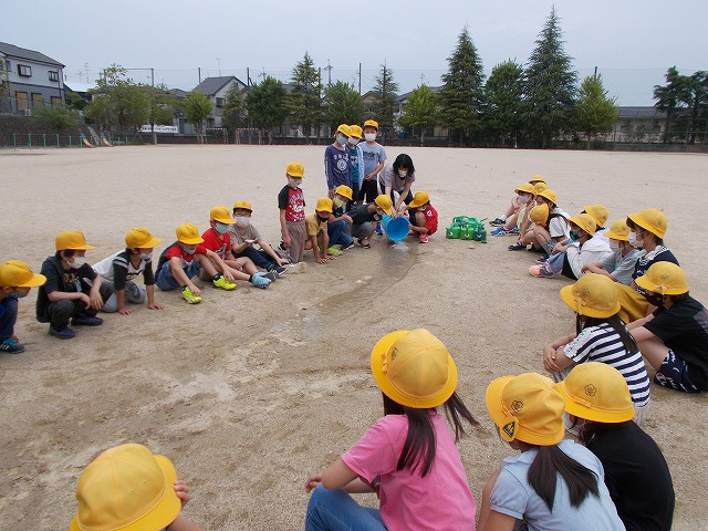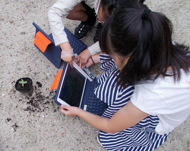3年生は発芽した子葉をいろいろな角度から撮影して観察記録を書きました。4年生は運動場で水の流れ方について実験して確かめました。