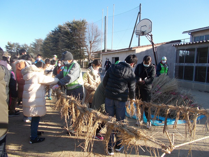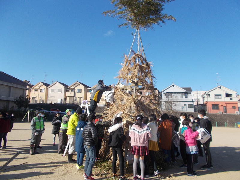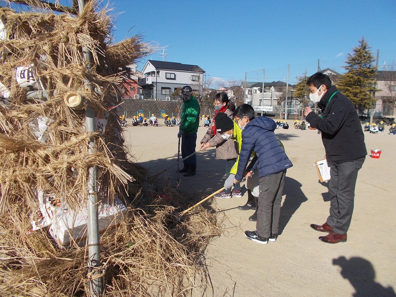 今年は全校児童で無病息災を願いました。とんど実施にあたりお世話になった健康ヶ丘区長様を始め、スポーツ同好会、防犯推進委員、民生児童委員、青少協役員、PTAの皆様ありがとうございました。
