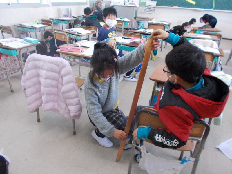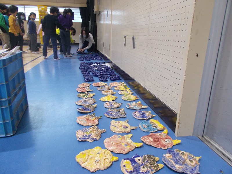 2年生は長さの単位でmを学習し、紙テープを使って1mの長さを体感しました(写真左)。2学期に制作した楽焼きが窯元から戻ってきました。2/25~2/26の作品展で展示します(写真左)。