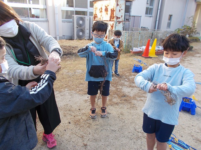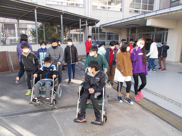 1年生はアサガオのつるを使ったリースづくり、5年生は福祉学習として車椅子体験をしました。