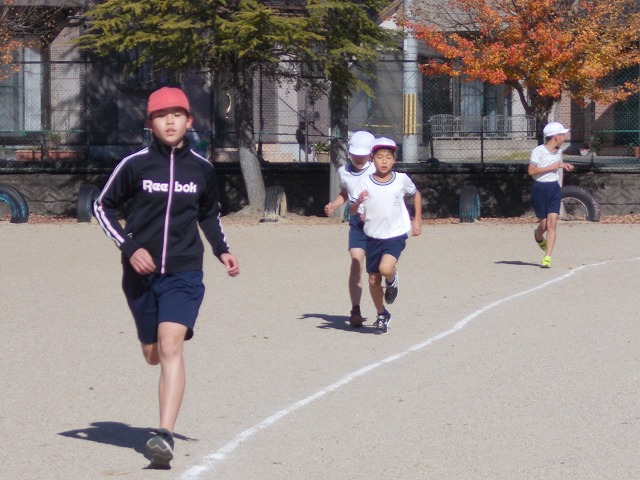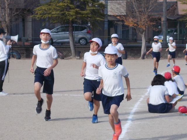 冬の体育の定番「持久走」が始まりました。記録更新を目指して頑張っています。