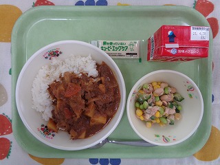 給食のカレーは、ルウから手作りです。バターと小麦粉を