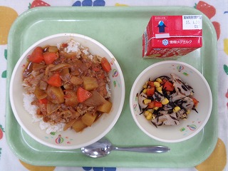 今日は、いい歯の日の献立で、サラダにれんこんやひじき