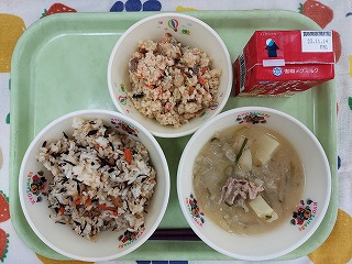 給食では、油揚げや人参、こんにゃくと一緒に煮た「炒