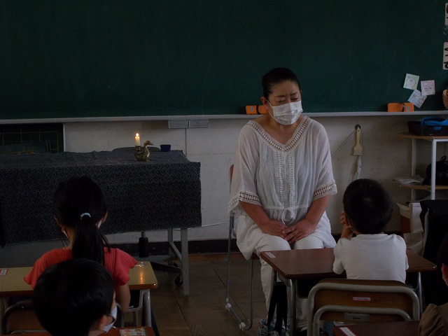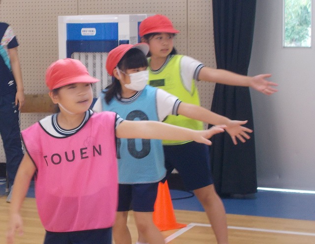 1年生はお話し会を聴かせてもらいました。3年生は体育館でリレーをしました。みんな真剣でした。