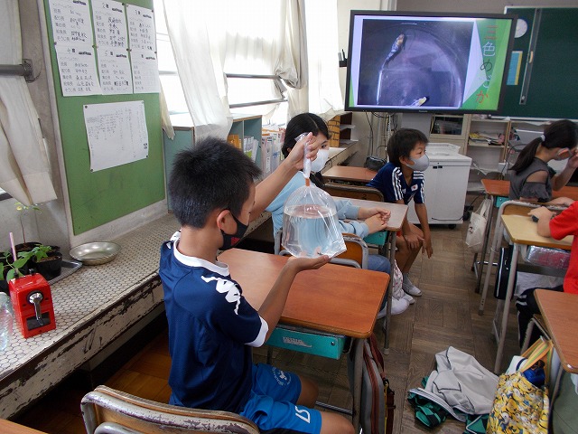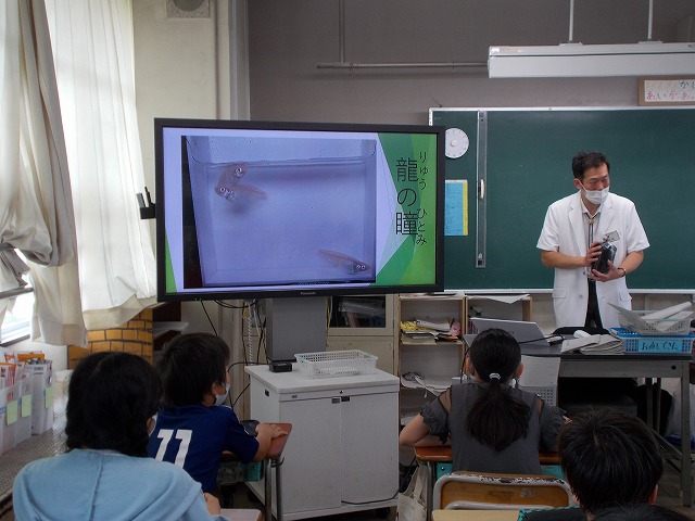5年生が木津高校のメダカの先生出前授業を受けました。