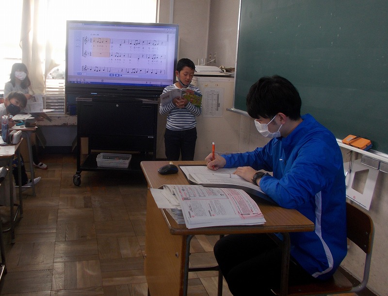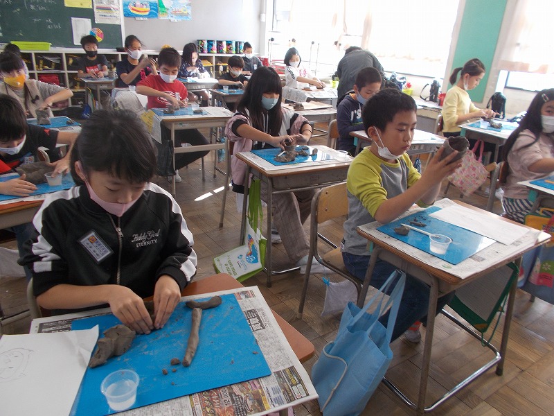 4年生では歌のテストが始まっています(写真左)。また3学期の作品展に向けた焼き物作りも始まりました。