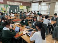 11月7日(金)、1年の総合的な学習の時間に取り組んでいた「京田辺の安心安全」をテーマにした発表会を開催しました。1年生は、9月に地域のフィールドワークに出かけ、危険箇所の調査を行いました。その成果として、危険箇所マップを作成し、どのように改善できるかについて解決案を考えました。本日の発表会では、各班が調査結果と提案をわかりやすく発表し、地域の安全について真剣に考える姿が見られました。
