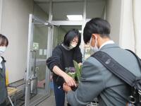 B-Flowerプロジェクトで作った鉢植えを、近隣の施設に持って行きました。どの施設でも、大変喜んでいただき、高齢者の方に笑顔になってもらおうと作った鉢植えが、別の笑顔につながりました。生徒会スローガンの笑顔は笑顔をつれてくるは、本当ですね。笑顔のもとのお裾分けができました。
