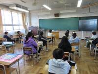 (6年生が作成した給食の紹介動画を各クラスで流しました。)