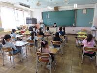 今日は幼稚園と5年生が一緒に給食を食べる交流会を行いました。「給食おいしい!」と多くの子が完食し、5年生が「残さず食べられてすごいね!」と優しく声をかける頼もしい姿が見られました。