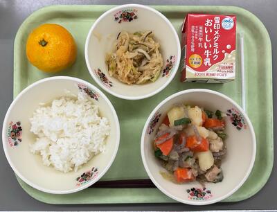 今日の給食のうま塩肉じゃがは、鶏肉や野菜のうまみがよくでていて、ご飯がいつも以上に進んで食べている児童がたくさんいました。