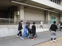砂利道など、日ごろ歩いている道を車いすで通る体験を行いました。