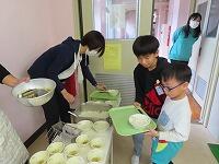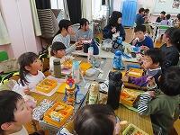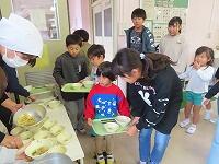普賢寺小学校に給食体験に行きました。今回は年中たんぽぽ組も行かせてもらいました。