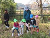 紅葉した赤や黄色のきれいな葉っぱを見つけて「みてみて」と嬉しそうな子どもたちでした。