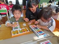 年少もも組はレッツクリエイトコースに参加しました。昔あった水取小学校を再現しよう!と小学生と