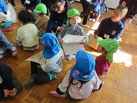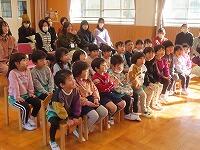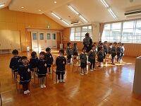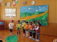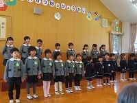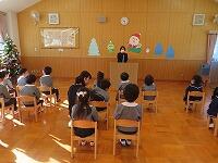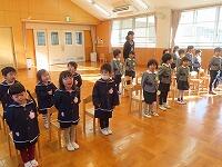 名前を呼ばれたら大きな声で返事をすることができました。園長先生の話を聞き、みんなで2学期を振り返りました。