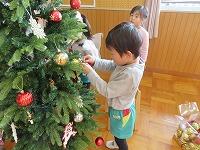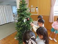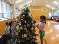 12月といえば…クリスマス!ということで年長すみれ組がクリスマスツリーに飾り付けをしてくれました。キラキラピカピカ輝く飾りに大喜びの子ども達でした!
