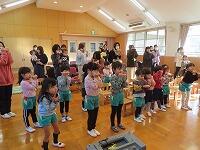 年中たんぽぽ組は3種の打楽器でもも組をリードしてくれ、楽器遊びをしました。