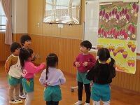 給食後は、餃子ジャンケンをして楽しみました。新しいジャンケンを教えてもらって喜んでいました。
