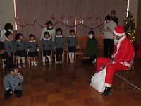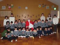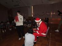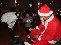 「クリスマス会もうちょっとやな」「サンタさん来るかな?」「ケーキも楽しみ♡」と今日の日を楽しみにしてきました。朝からワクワクしていた子ども達…一人一人が作ったクリスマス製作を飾ってキャンドルを灯し、いつものホールが幻想的な雰囲気になりました。先生達のハンドベルを聞いたり、クラスごとにクリスマスソングを歌ったりしていると、鈴の音が聞こえてきてサンタクロースが来てくれました!サンタさんから一人ずつプレゼントをもらい、嬉しそうな子ども達でした。