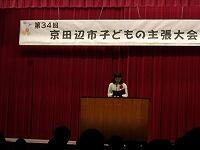 11月30日(日)京田辺市子どもの主張大会において、本校6年生の 川本純蓮さんが「負けてわかったこと」を立派に発表してくれました。ハンドボールの大事な試合で負けた経験と、全国大会を観戦した経験から、自分自身のチームを支える姿勢などを改めて振り返り、自分を成長させる機会となったことを話していました。落ち着いた口調で、わかりやすく、聴衆が聞き入ってしまう発表でした。