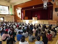 1年生と2年生が一緒に楽しむ交流会をしました。新聞紙を使ったじゃんけんゲームや、ボールを使ったゲームなど、2年生が司会進行をし、1年生を上手にリードしながら進めていました。体育館に歓声が上がっていました。