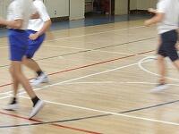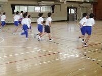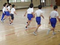 音が鳴るタイミングに合わせて、まっすぐ走って、折り返す運動です。