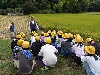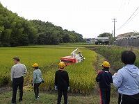 地域の多くの方々のご協力により、稲刈りをさせていただきました。稲刈りの時間は少しになりましたが、コンバインでの稲刈りの様子も見学できました。また、近くのライスセンターでの見学でもお世話になりました。ありがとうございました。