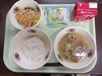 この日の献立は、「牛乳、チャーハン、揚げシューマイ、中華スープ」でした。
