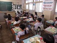 19日(金)。幼小接続の一環として、給食体験に来てくれました。5年生のお兄さん・お姉さんたちが準備してくれた給食をおいしそうに食べていました。