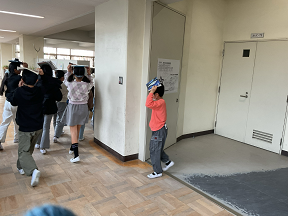 児童には、実施日時を伝えずに行いましたが、揺れている時にどのような行動をとったらよいのか、速やかな避難方法、避難後の集合時の注意点等、一人一人が自身で身を守る方法を考えながら行動できました。
