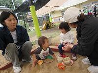 ふれあい保育(0歳児・1歳児)がありました。砂でごちそうやお山を作って楽しく遊びました。