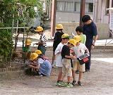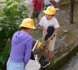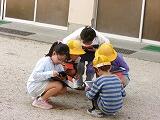 タブレットをもって、中庭あたりで小さな生き物見つけを楽しんでいました。
