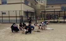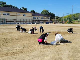 同じ時間帯に、PTAの環境美化作業を実施していただきました。大住っ子の練習を見ながら、グランドの草引きをしていただきました。