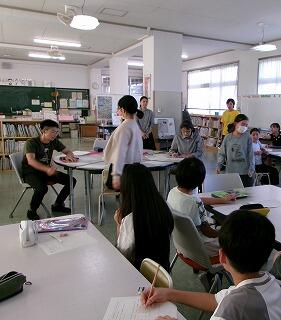 朝の会の時間を使って、PTAサークルの「おはなしポケット」さんによる読み聞かせが行われました。