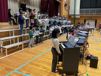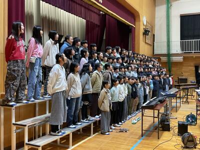 最後に登場した6年生は、「夢を信じて、明るい未来へ」をテーマに、これまでの学びや思いをこめた発表を披露しました。一人ひとりの歌声と合奏に堂々とした姿が見られ、最高学年としての成長を感じる時間となりました。