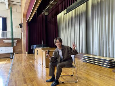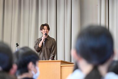 今回は第3弾として、芸能界で活躍されている 大倉士門(おおくら・しもん)さんを講師にお迎えしました。大倉さんはモデル・タレントとして活動され、ドラマやテレビ番組などにも多数出演されています。京田辺市PR大使としても尽力いただいてます。明るく親しみやすい語り口で、多くのファンに支持されている方です。