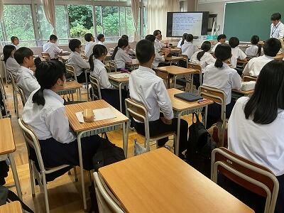 本日、SELF(総合的な学習の時間)に進路について学習しました。半年後には3年生になり、自分の今後の進路について具体的に考えていく必要があります。今回の授業では、どのような高校があるのか、高校を選択する方法について考え、他のみんなは進路についてどのように考えているのか交流しました。来年度から、京都府公立高等学校の入学者選抜方法が変わります。詳細はまだわかりませんが、今後も進路情報に注目していく必要があります。次回のSELFでは、『高校調べ』を行います。自分が調べたい高校について考えておきましょう。