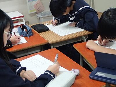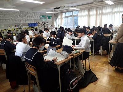 多くの生徒が自分なりの「防災」に対する意識を持ち、積極的に取り組むことができました。また、直下型地震の特徴や緊急地震速報について学習しました。