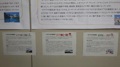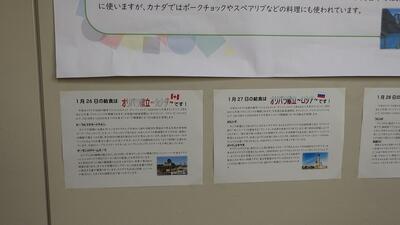 昇降口には本校の給食委員の生徒が給食センターに見学に行った時のレポートも掲示してあります。