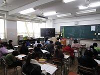1月21日に地震の避難訓練を行いました。地震が起きた時、授業中でなくても自分自身で考え、安全な行動を取れることを目的に実施しました。京田辺市の消防署の方にも来ていただき、地震が起こった時の対応等も教えていただきました。