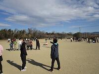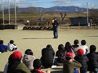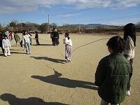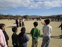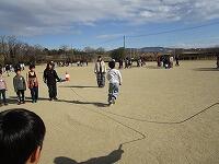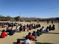 本日、3時間目に全校でとんど(左義長)を行いました。河原こども園の園児たちも参加しました。