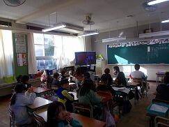 11月7日(金)、6年生は、大住中学校の体験入学に行って来ました。はじめに、大住中学校の生徒会の皆さんより、クイズを交えながら大住中学校の紹介がありました。1日の流れや学校行事、クラブ活動など、小学校とは違う学校生活について、興味津々で聞いていました。
