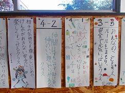 各クラスで立てた人権目標を昇降口に掲示しています。人権週間に今一度、各クラスでその目標が大切にされているか、目標達成に向けた行動ができているかなどを振り返っています。また、人権学習では、教材を活用し、人権の大切さや人権感覚を磨くことをめあてに学習しています。