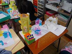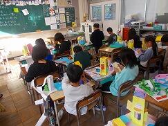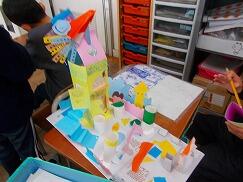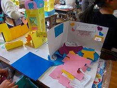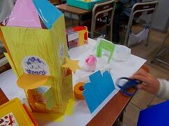 2年生は、図画工作科「まどのあるたてもの」の授業で、色画用紙で自分の好きな世界を立体的に作る工作に取り組んでいます。まどの位置や形、まどから見えるものなどを工夫して作っていました。子ども達は、どんどんイメージが膨らんでくるようで、夢中になって作成していました。出来上がりが楽しみです。