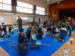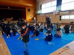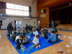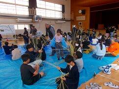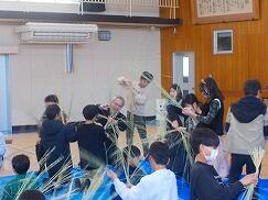12月16日(火)、毎年ご協力いただいている京田辺市青少年育成会の皆様に今年もお世話になり、5年生がしめ縄作り体験をしました。はじめに稲わらの編み方の説明をしていただき、その後は個別に丁寧に教えていただきました。子ども達は、慣れてくると自分の力で上手に編むことができたようで、その力作に満足な様子でした。お家でご用意いただいた飾りも付け完成。お正月に飾るのが今から楽しみですね。