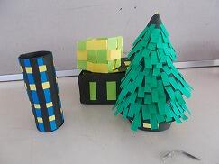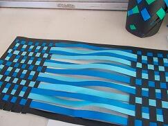 6年生は、図画工作科「形の組み合わせで何できる?」の授業で、紙を組み合させて作成する工作に取り組んでいます。カッターで紙に切り込みを入れ、細く切った色画用紙を差し込み、編んでいきます。子ども達は、慎重に切り込みを入れ、出来上がりをイメージしながら集中して取り組んでいました。