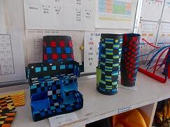 6年生が、図画工作科「編んでつくろう」の授業で取り組んだ作品が完成しました。編んだ模様を上手に作品の中に生かしながら作っていました。みんなちがってみんないいですね。